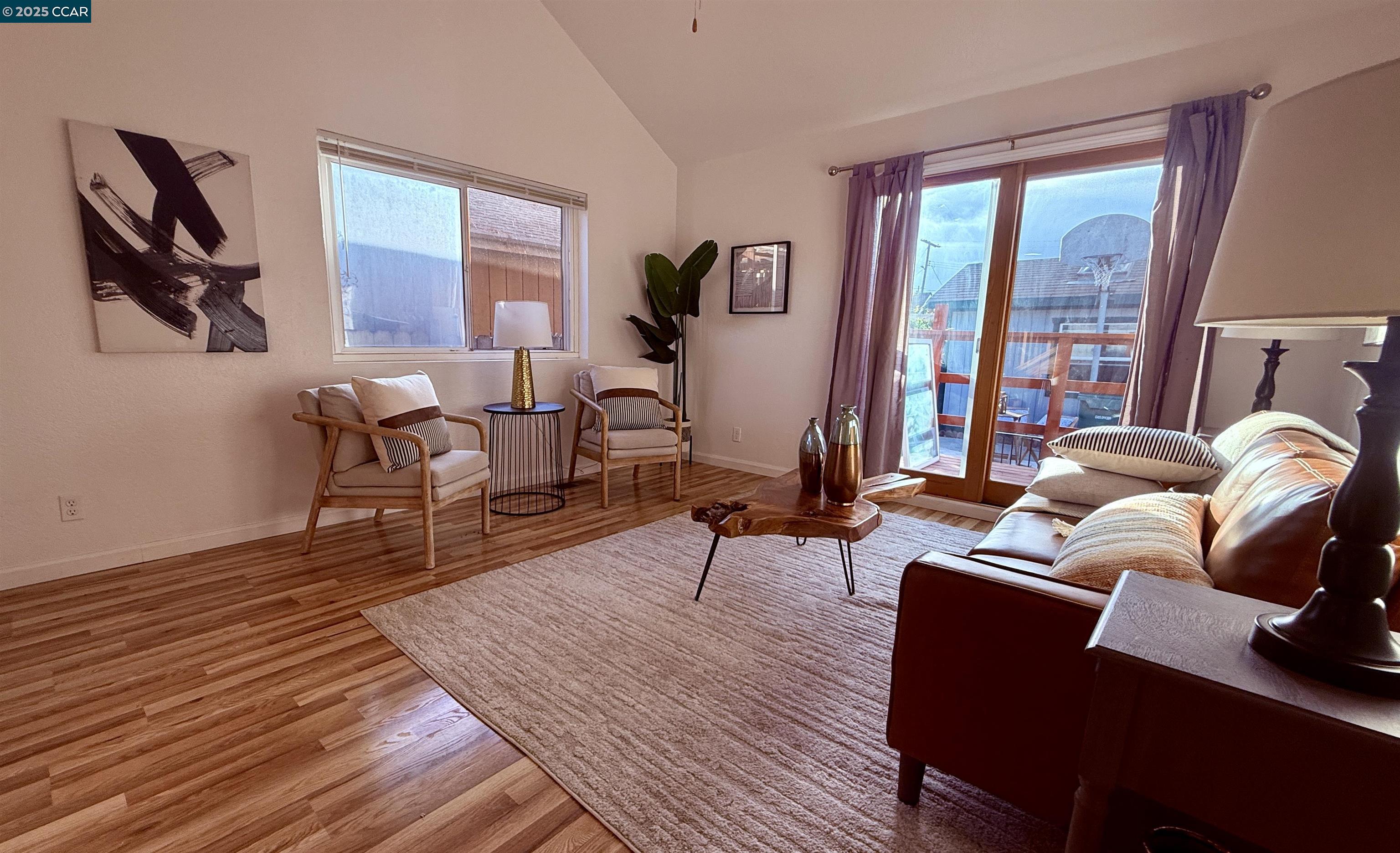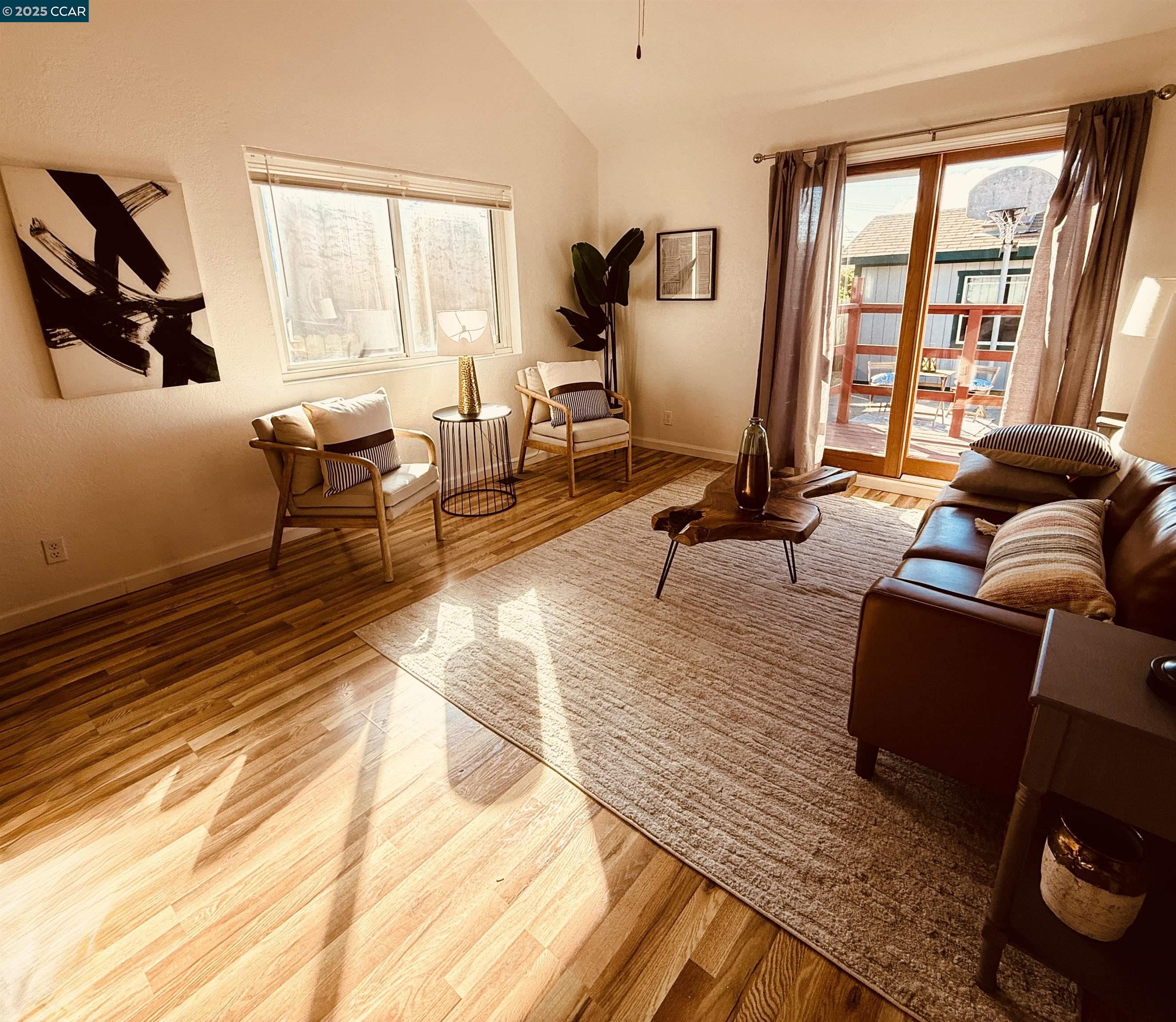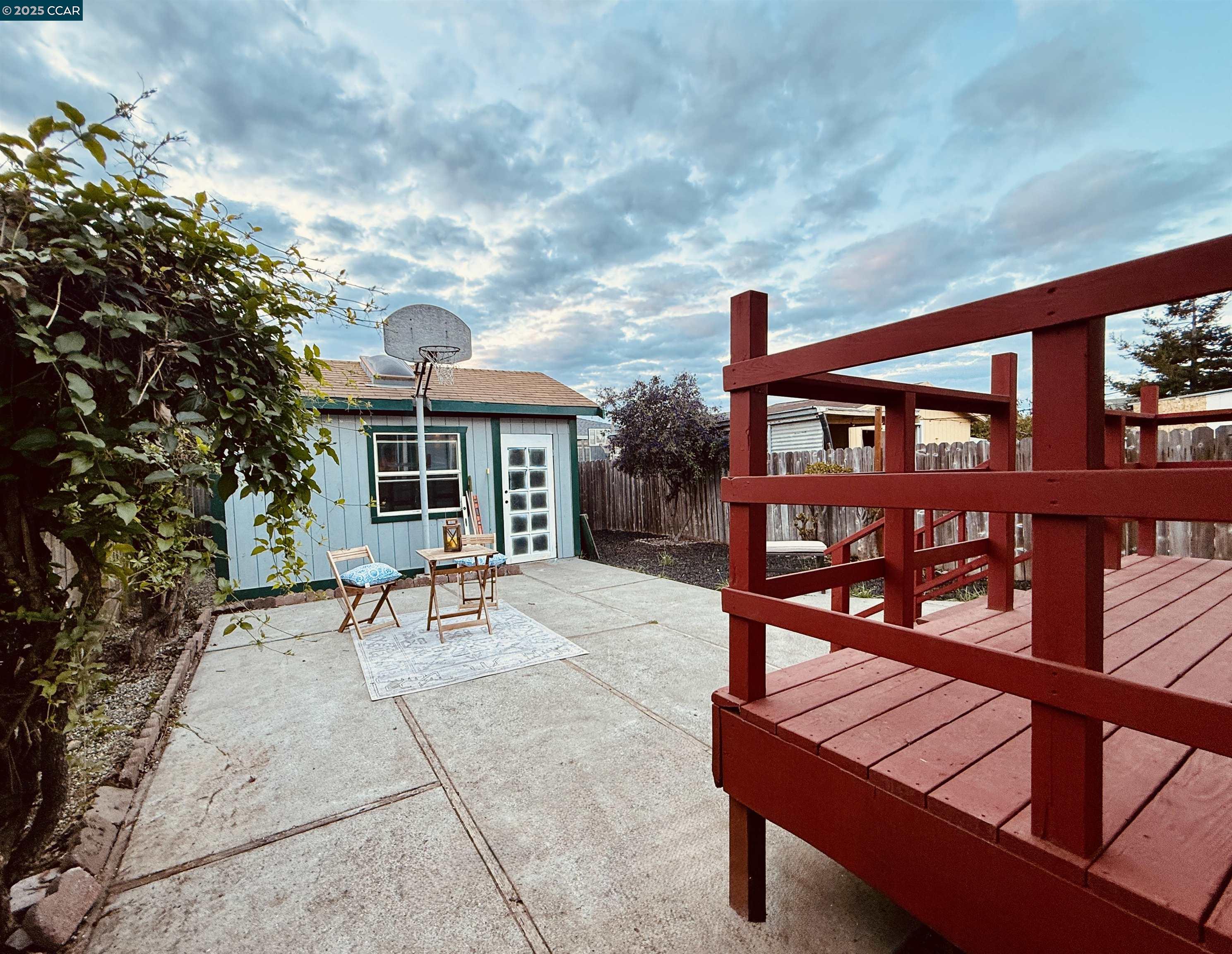Welcome to 1945 21st Street. A 3 bd & 2 bath home with just over 1,000 sq. ft. of living space is located in the heart of San Pablo. Commuting is a breeze with easy access to major Bay Area freeways, parks, shopping, dining, and schools. Sewer lateral compliant as of 6/25, this move-in ready property is the perfect opportunity for first-time homebuyers or those seeking versatility in their living arrangements. Step inside to find high ceilings and an open, airy layout filled with natural light. With fresh interior paint throughout, brand-new carpet upstairs, hardwood LVP flooring and new blinds help create a clean and modern look. The functional kitchen and dining area open to a tiled two-car garage with laundry hook-ups, built-in storage, and space ideal for parking, a home gym, or a workshop.The primary suite on the main level offers privacy and deck access, while two additional upstairs bedrooms provide flexibility for guests, children, or a home office. Enjoy dining or morning coffee on the expansive deck overlooking a shed and private yard—perfect for entertaining, gardening, or your four-legged friends. Don’t let this fantastic opportunity slip away! Open House Sat. 10/18 1:00-4:00PM & Sun. 10/19 12:00-3:00PM